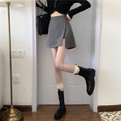 スカート 夏服ハイウェストウェストスリムショートグレーAライン 夏物 ウエスト コーデ marchs6755536958449