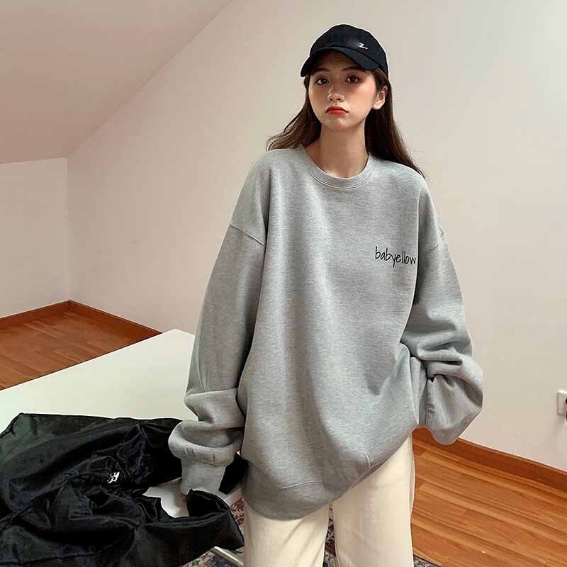 スプリング秋物韓国ファッションプリントルーズラウンドネックプルオーバー セーター レディース ロング 春物 オータム Oネック 長袖 コーデ marchs6776480698159