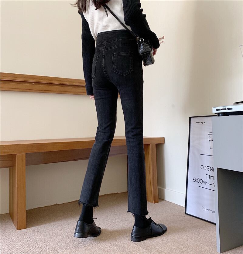 スタンダードブラックスリムジーンズ スプリング秋物ウェスト薄手パンツ レトロ 春物 オータム ウエスト コーデ marchs6760909094311