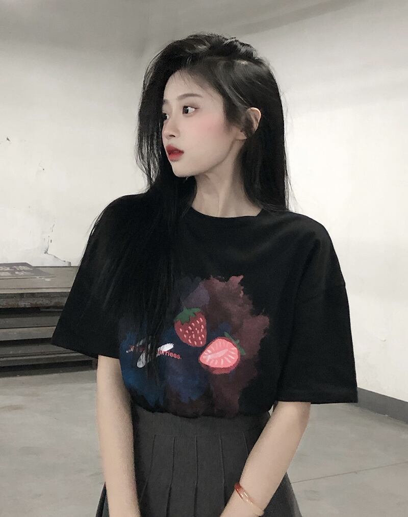 夏服韓国ファッションプリント柄ブラックTシャツスタイルルーズトップス 夏物 コーデ marchs6726923432144