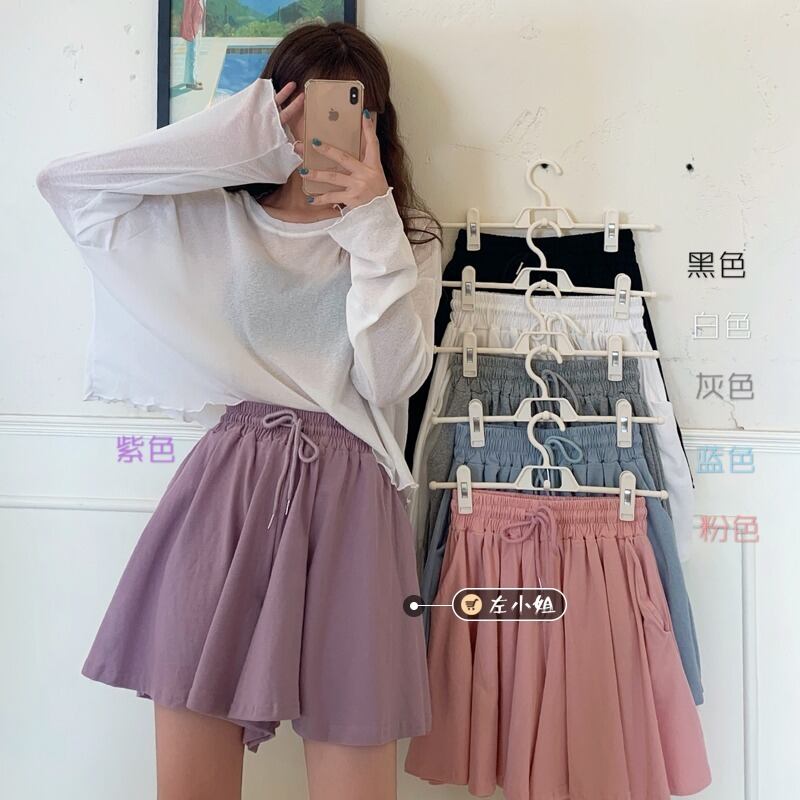 ショーツ スカート レディース夏服薄手ハイウェストウェストワイドレッグパンツ ルーズAライン 夏物 ワイドパンツ ウエスト コーデ marchs6799674886417