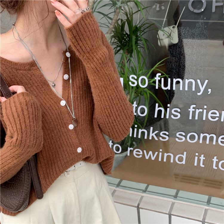 秋物薄手スタイル韓国ファッショントップス ショートニットカーディガンコート 大人ガーリー スウィート キュート カジュアル オータム コーデ Marchs34771799629