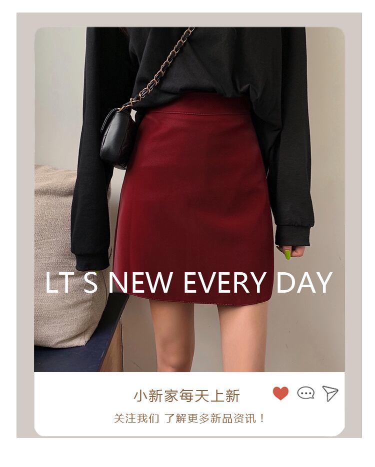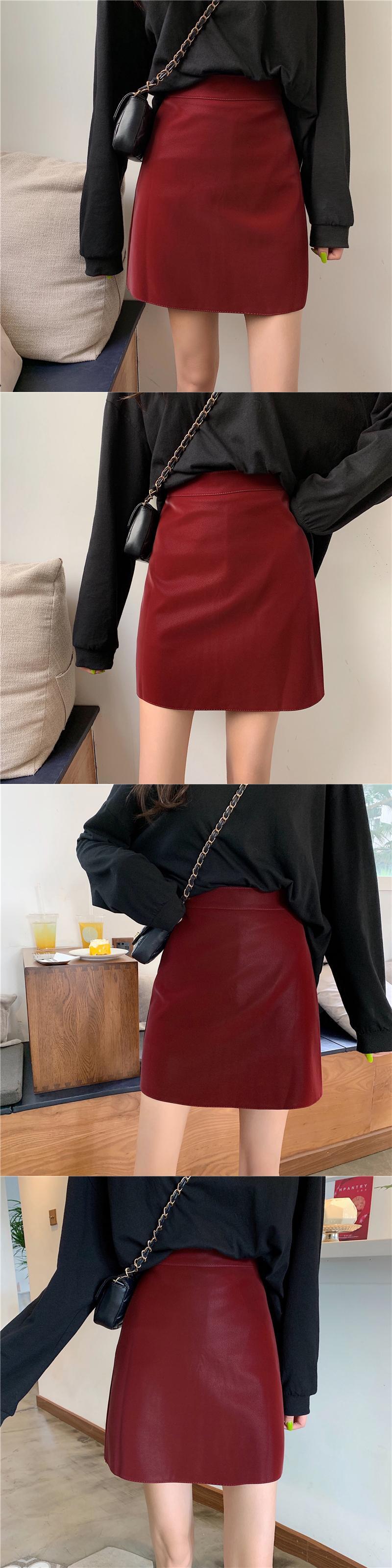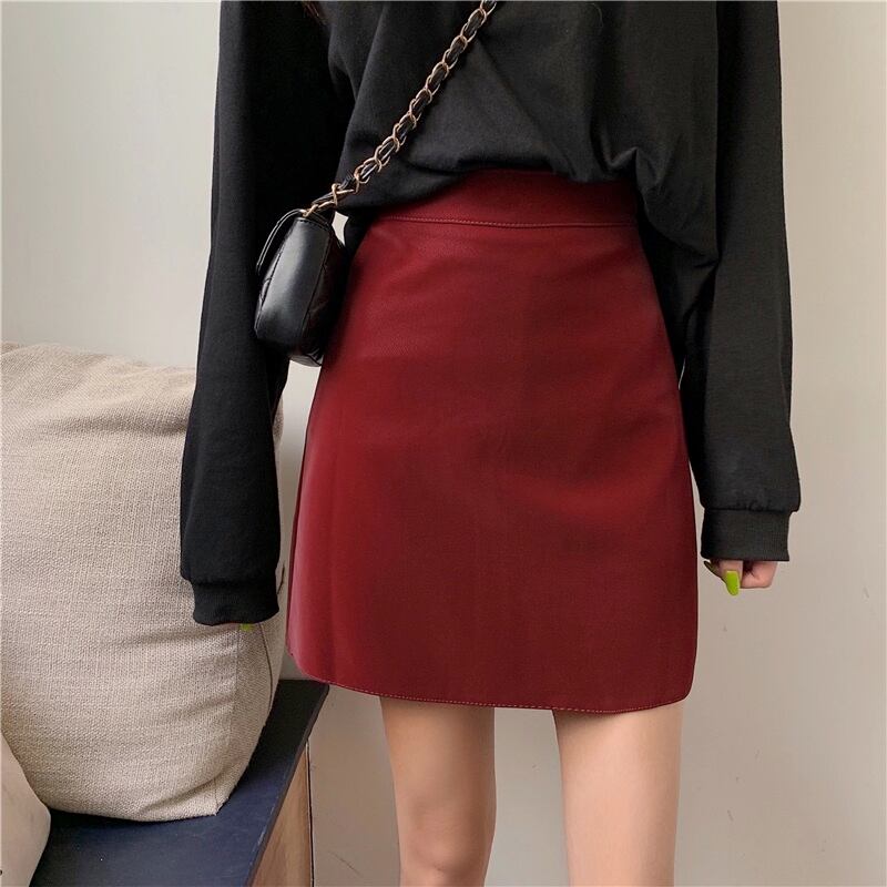 レッドレザースカート Aライン韓国ファッションハイウェストウェスト秋物ウィンターレディース オータム 冬物 スタイル ウエスト コーデ Marchs2231831046
