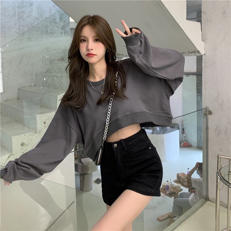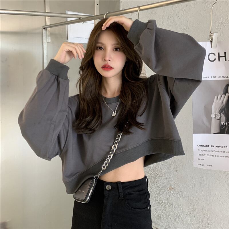 秋物韓国ファッションルーズショートハイウェストウェストヴィンテージセーター プルオーバー トップス NEW ストリート オータム ビンテージ スタイル ウエスト コーデ Marchs62328549673
