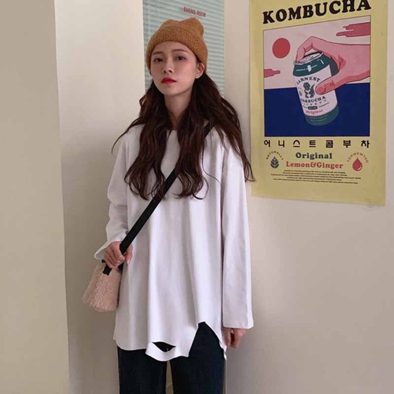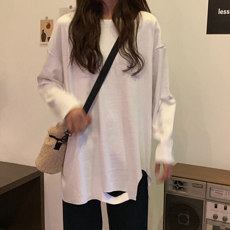 ホワイトTシャツシャツ スプリング秋物ゆったりルーズ ロング 春物 オータム 長袖 コーデ marchs6752473637313