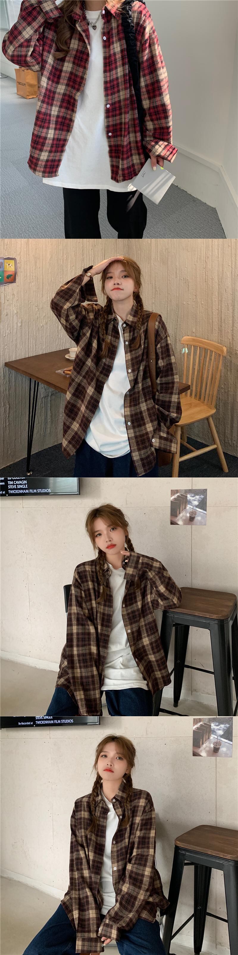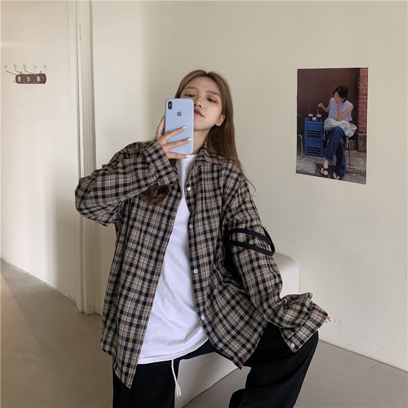 格子柄シャツ レディース秋物韓国ファッションルーズジャケット ロング オータム スタイル 長袖 コーデ Marchs89515009478