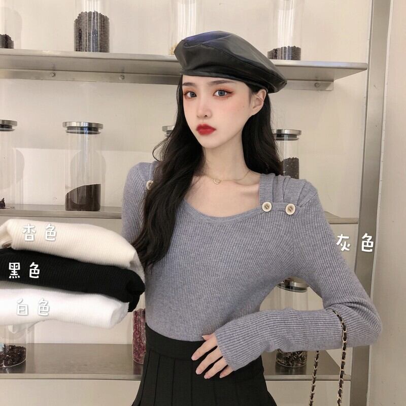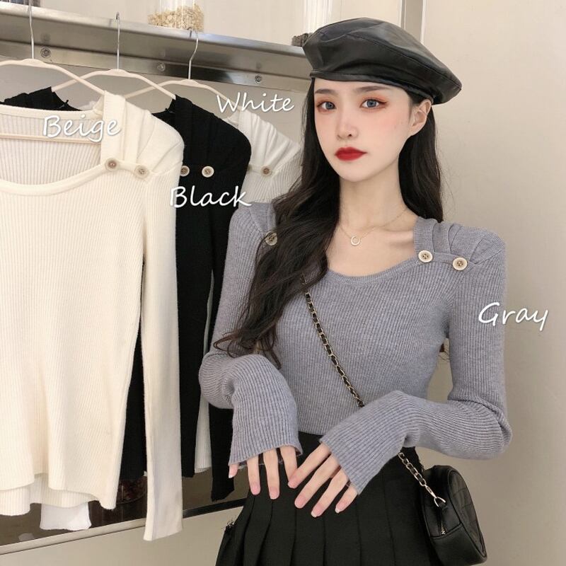 スプリング秋物スタンダードショートニットセーター スタイルゆったりシャツ トップス ロング レトロ 春物 オータム スクウェア 長袖 コーデ marchs6711057997945