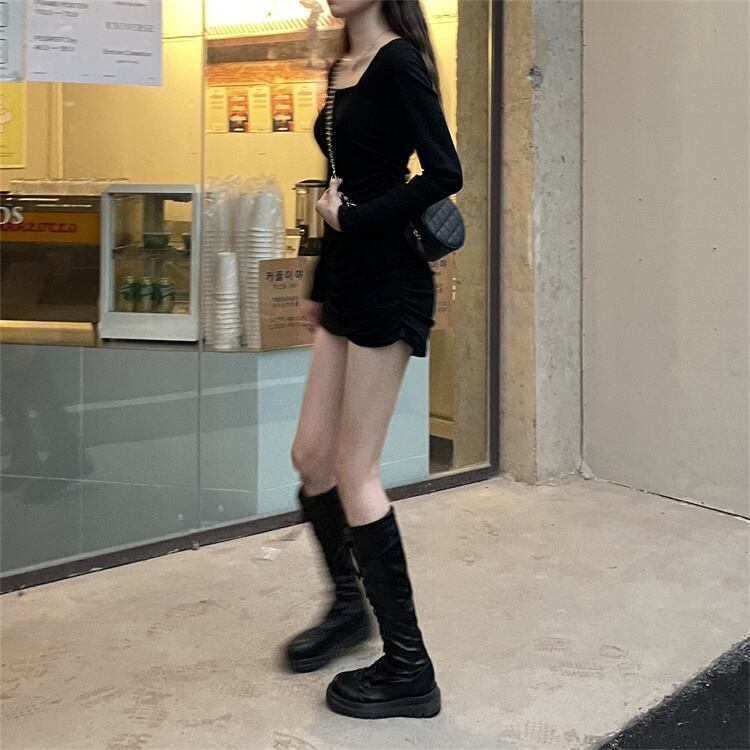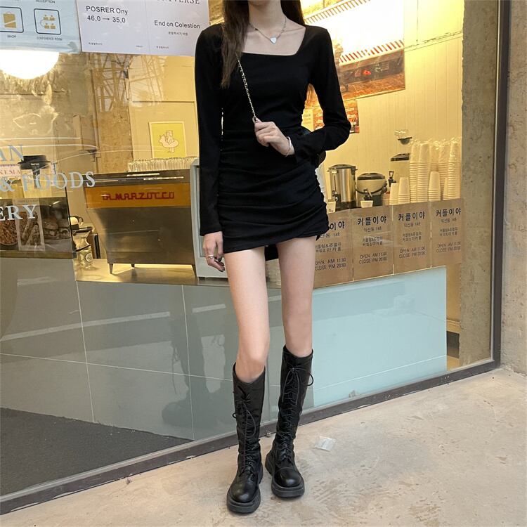 ブラックワンピーススプリング秋物スリムショートスカート ロング 大人ガーリー スウィート キュート カジュアル 春物 オータム 長袖 コーデ marchs6730028242682