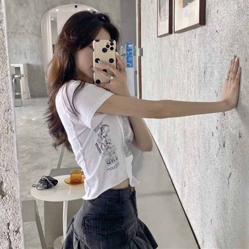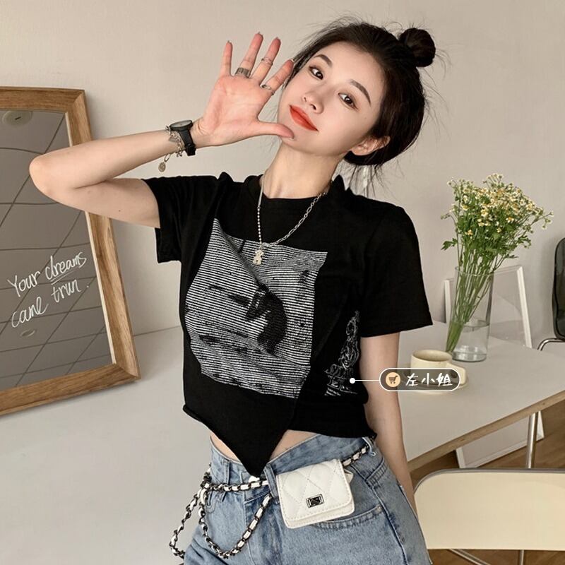 ショートトップス 夏服スタンダードブラックTシャツレディースNEW レトロ 大人ガーリー スウィート キュート カジュアル 夏物 コーデ marchs6757106767878