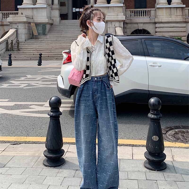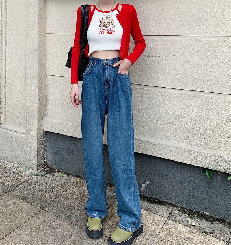 プリント柄ジーンズ スプリング秋物ルーズウェスト ストリート 春物 オータム ウエスト コーデ marchs6721701042924