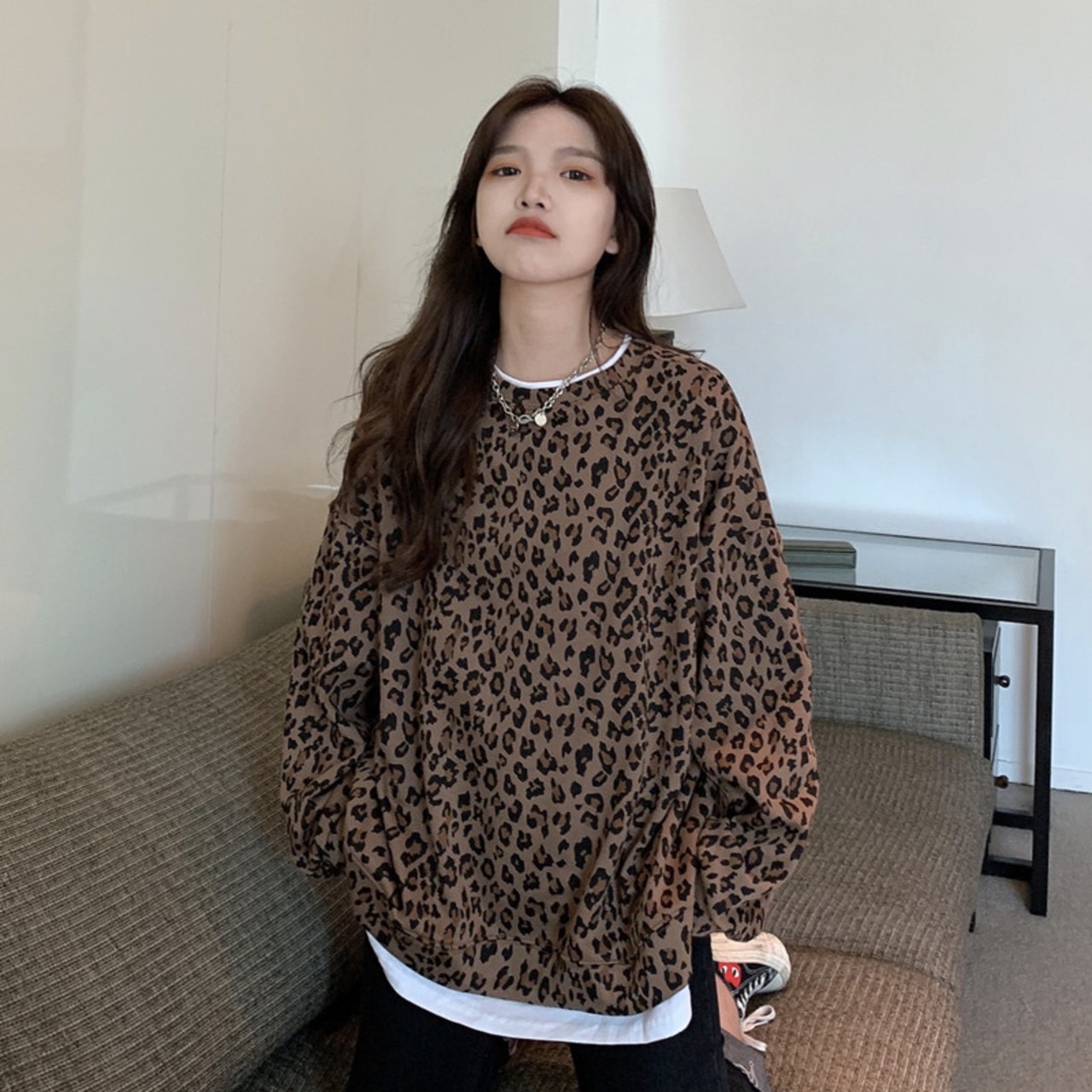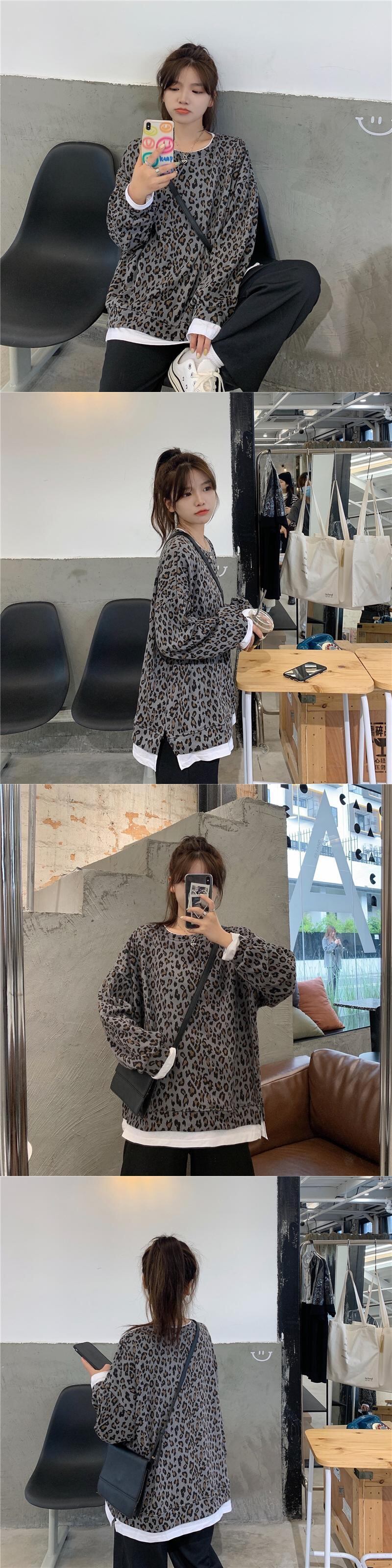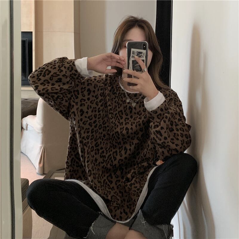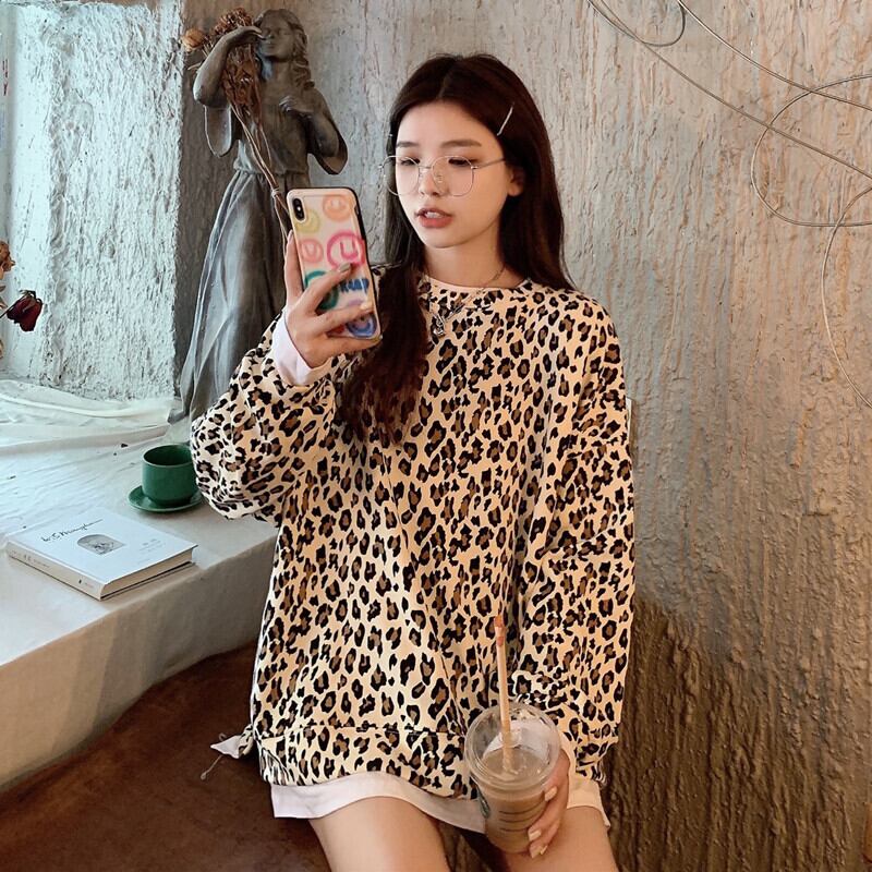 セーター レオパードプリント柄レディーススプリング秋物薄手NEWルーズ韓国ファッションラウンドネックキャップ 春物 オータム Oネック ボーイズ スタイル コーデ Marchs4627227341