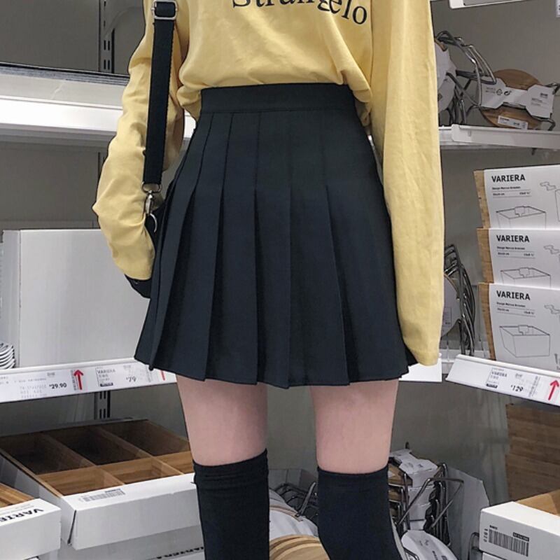 ブラックプリーツスカート レディーススプリング秋物ハイウェストウェストAラインショート薄手 春物 オータム ウエスト コーデ Marchs97177324871