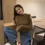 ニットセーター 秋物ゆったりシャツ プルオーバー ロング オータム 長袖 コーデ Marchs45305982978