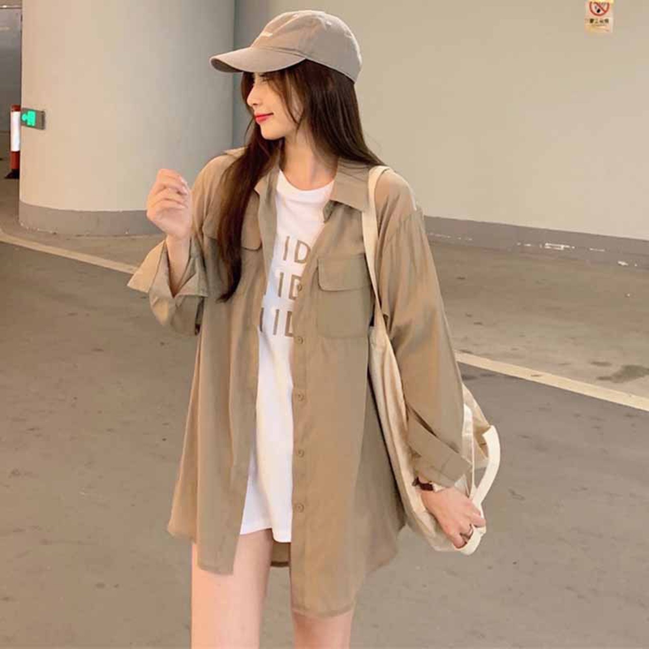スプリング秋物韓国ファッションブラウン長袖スリーブ薄手シャツ ワイルドルーズカーディガンジャケット レディース ロング 春物 オータム コーデ marchs6762694356197