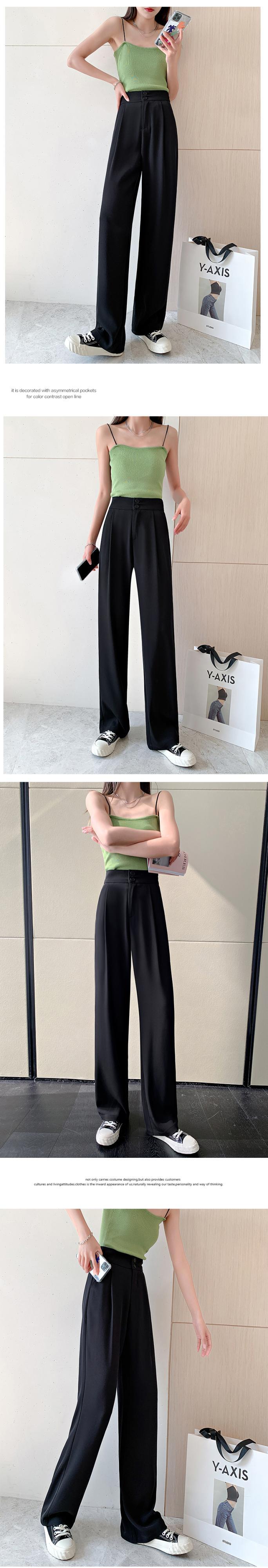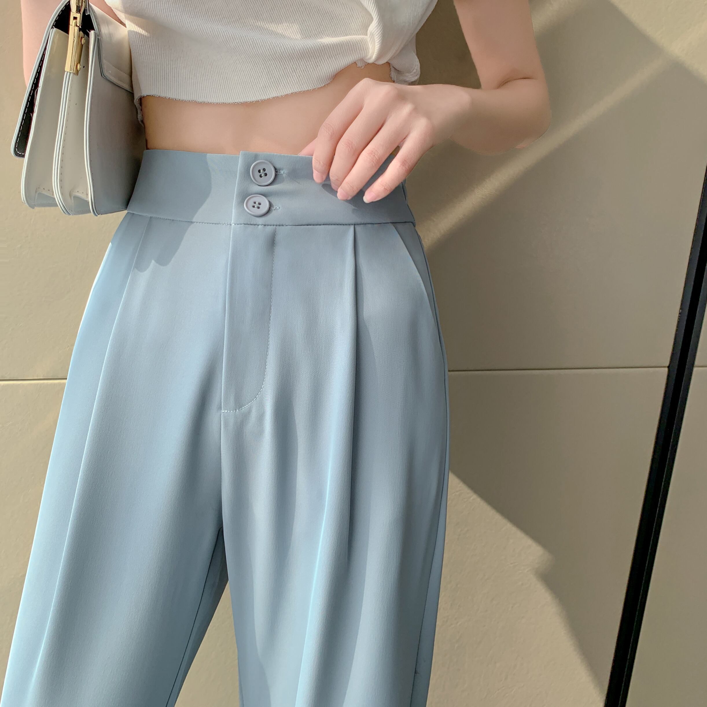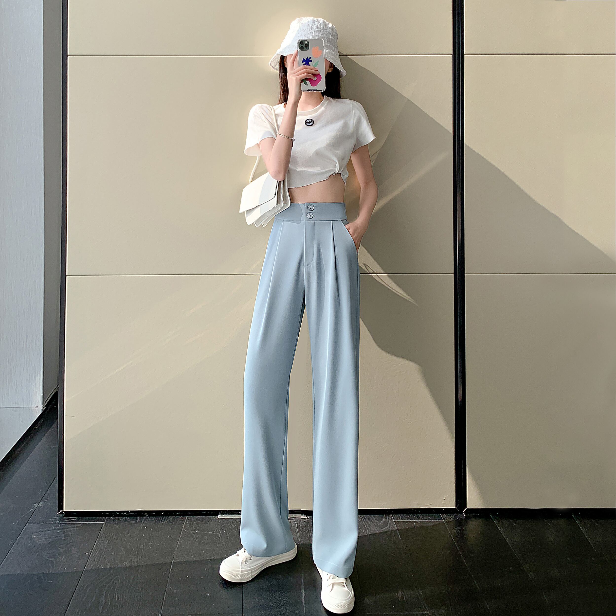 ロングパンツ レディース夏服薄手ブルーハイウェストウェストシフォンワイドレッグ 夏物 ワイドパンツ シルク ウエスト コーデ Marchs76250734719