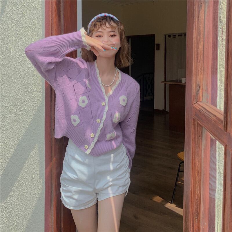 Flowerデザイン セーター カーディガンジャケット スプリング秋物クロップドトップス 大人ガーリー スウィート キュート カジュアル 春物 オータム フラワーデザイン コーデ marchs6726144526766