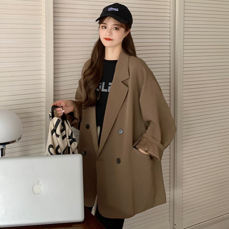 スプリング秋物スタンダードソリッド カラールーズダブルブレストカジュアルジャケット レディース レトロ 春物 オータム ソリッドカラー コーデ marchs6717575398964