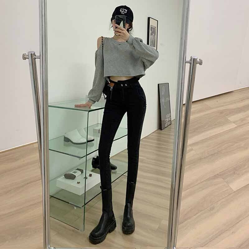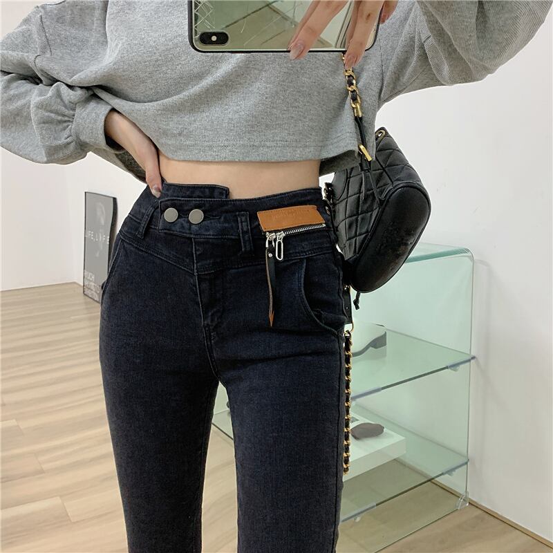 ハイウェストウェストスリムジーンズ スプリング秋物パンツ レッド 春物 オータム ウエスト コーデ marchs6791158972643