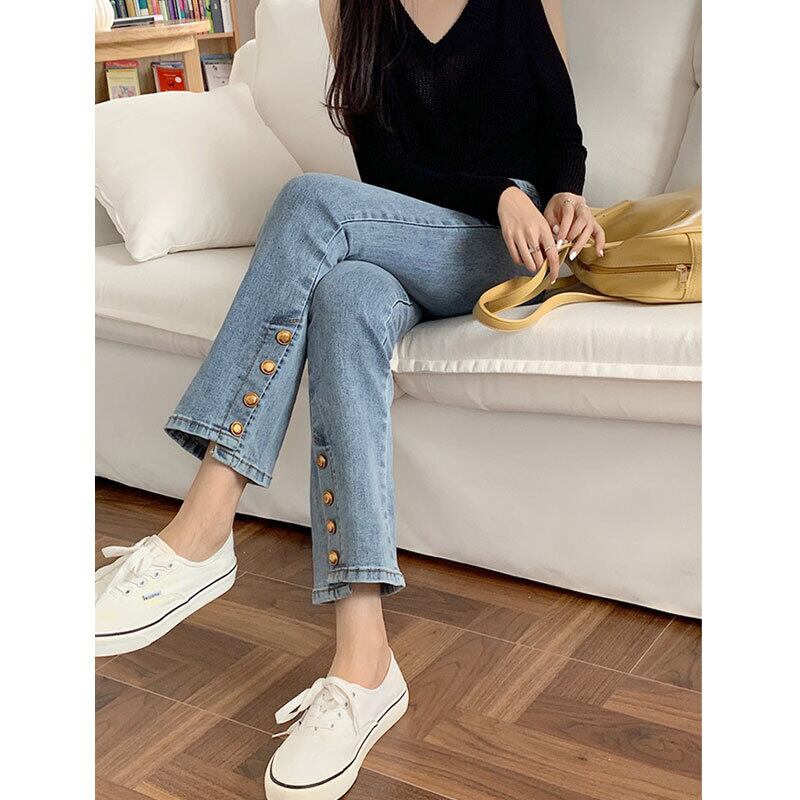 ジーンズ スプリング秋物ハイウェストウェストスリムパンツ 大きめサイズ 春物 オータム ウエスト コーデ marchs6756805401005