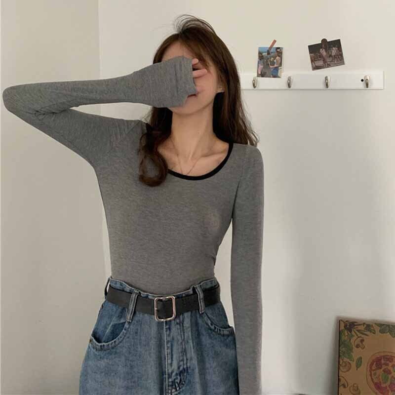 スプリング秋物スリムブラックTシャツレディース ロング 春物 オータム 長袖 コーデ marchs6775778099313