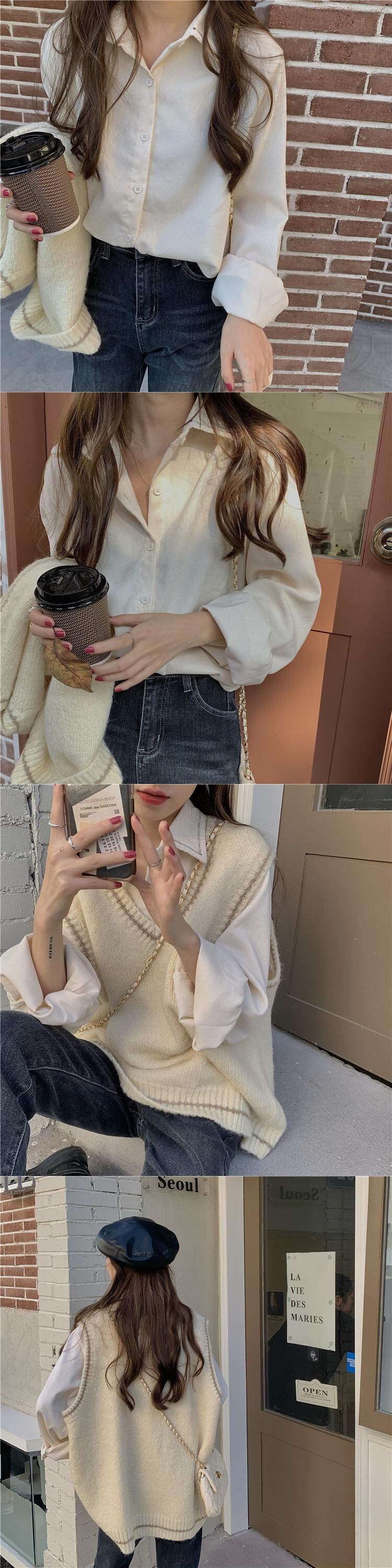 Vネックニットセーター レディーススプリング秋物シャツ スタンダードジャケット レトロ 春物 オータム コーデ Marchs19622107204