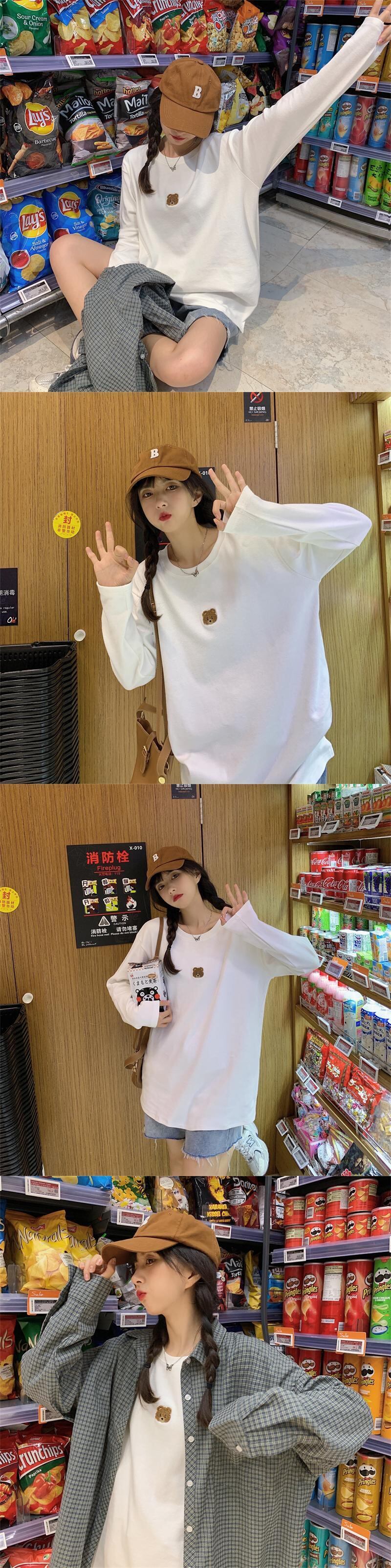 Tシャツシャツ 秋物ウィンタースタイルルーズ薄手ホワイトゆったり ロング オータム 冬物 長袖 ミドル丈 コーデ Marchs81347102484