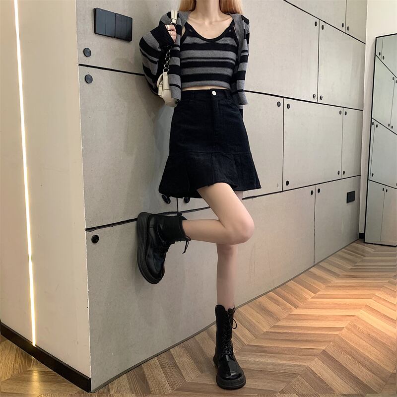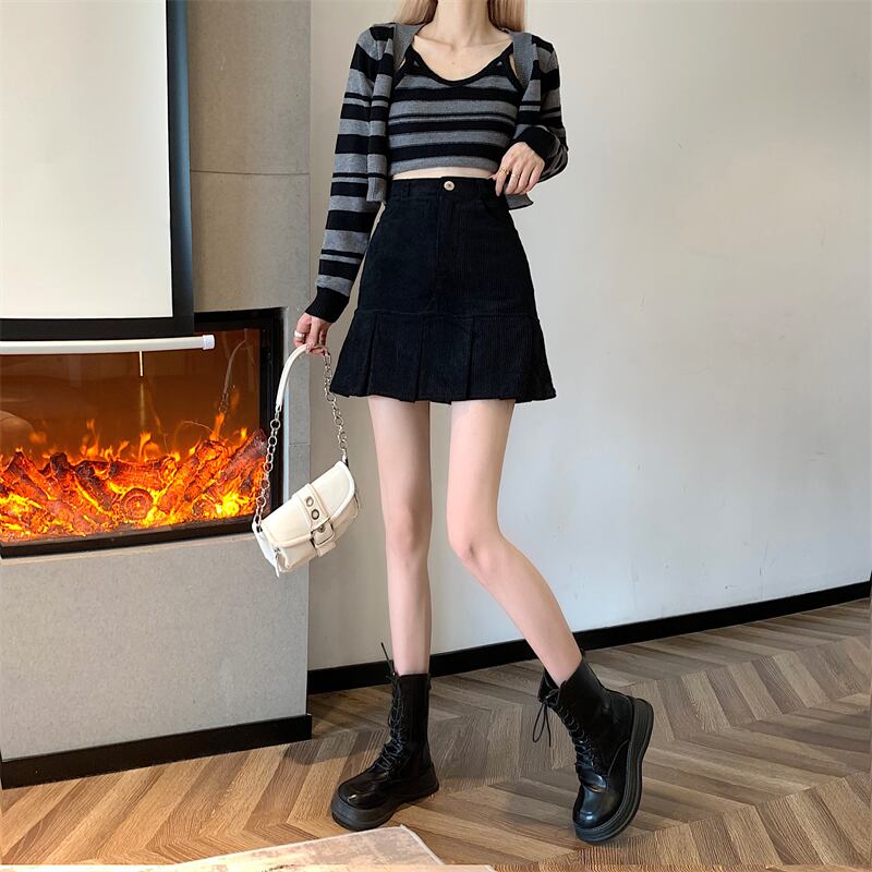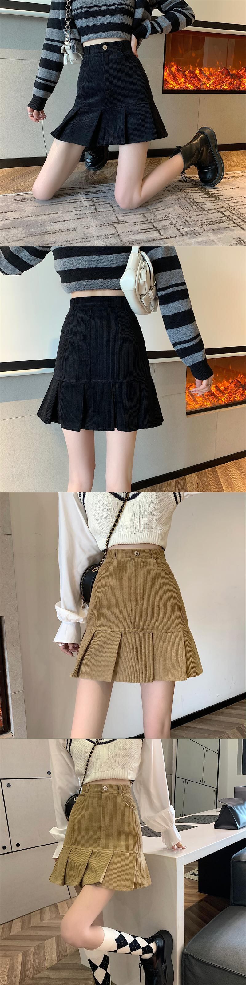 コーデュロイスカート レディース秋物ウィンターハイウェストウェストAラインショート オータム 冬物 ウエスト コーデ marchs6770815478044