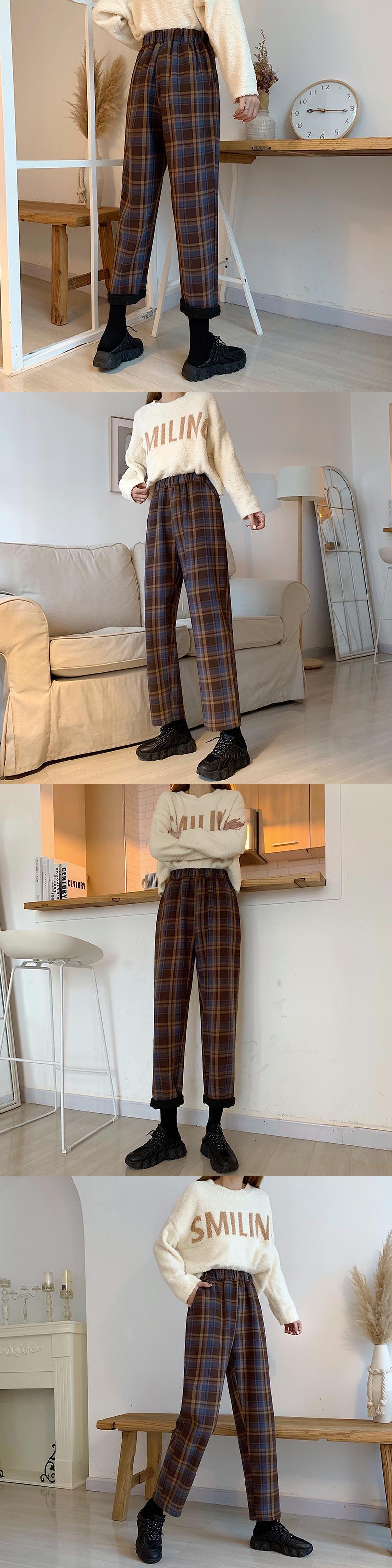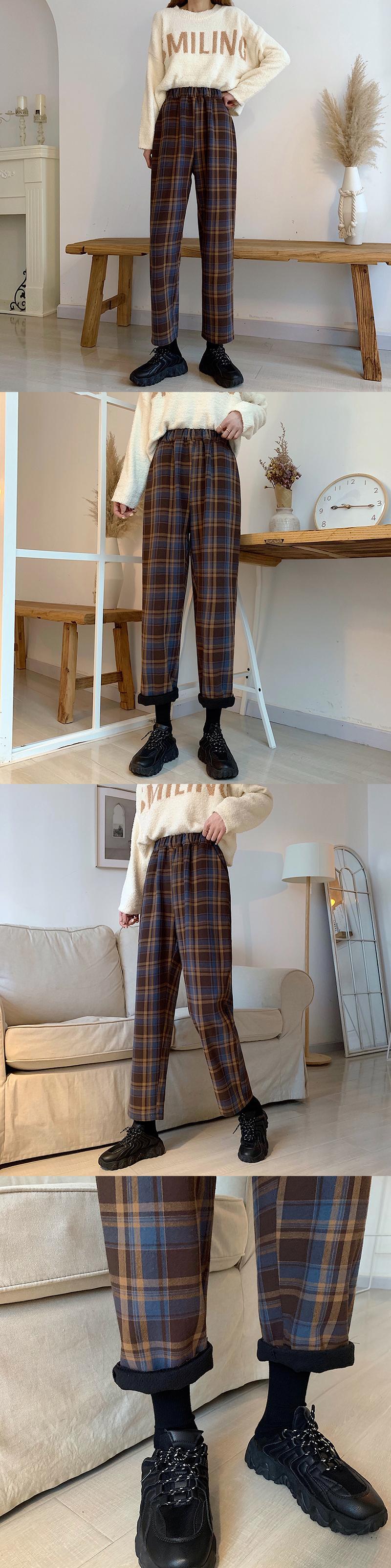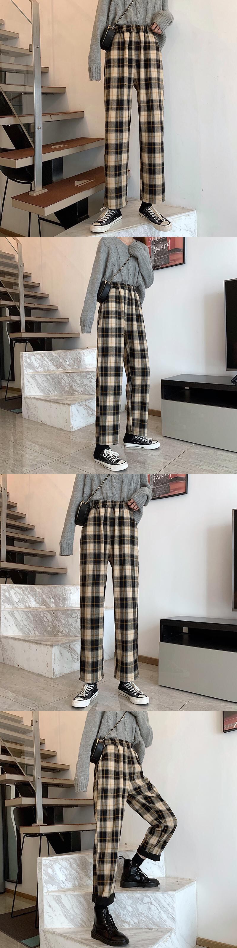 格子柄パンツ 秋物ウィンター厚みルーズハイウェストウェストカジュアル オータム 冬物 ウエスト コーデ marchs6732005196678