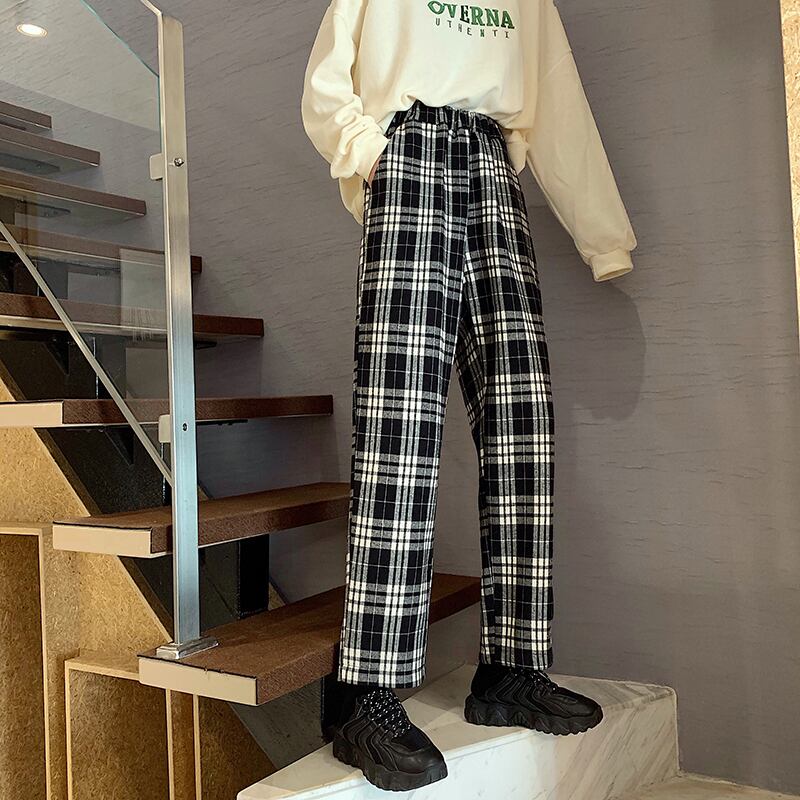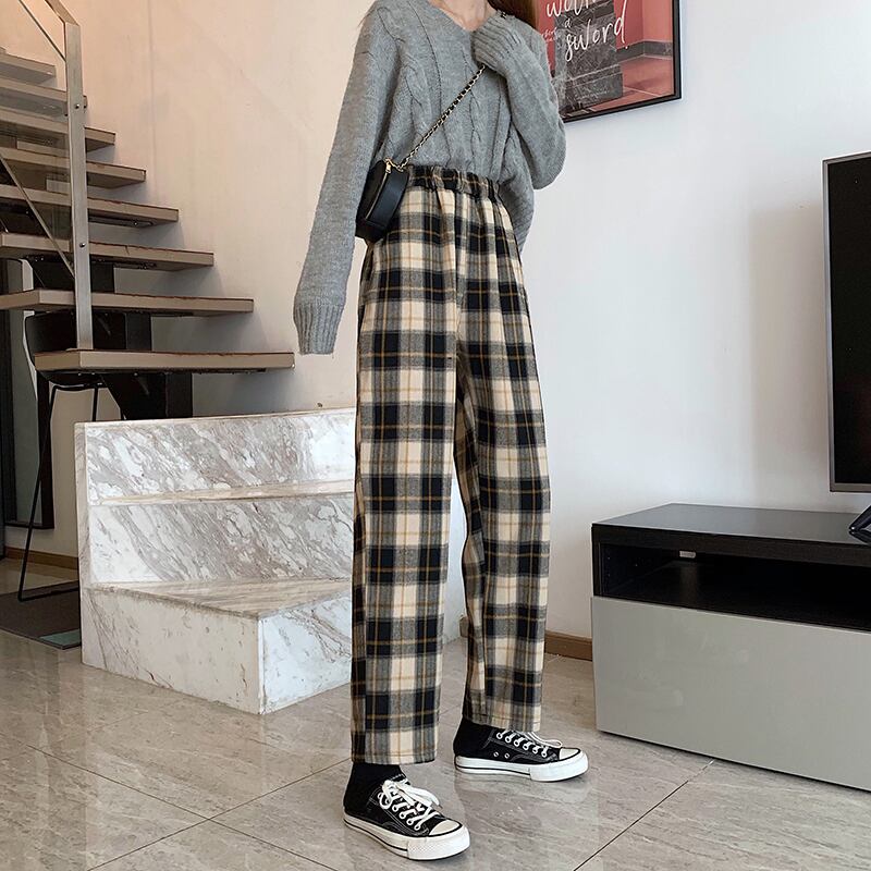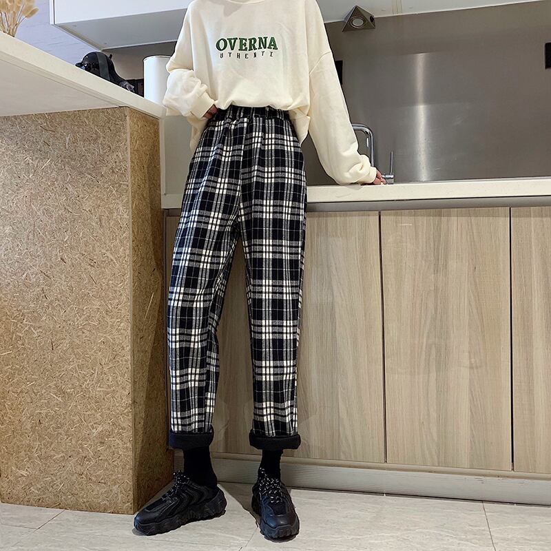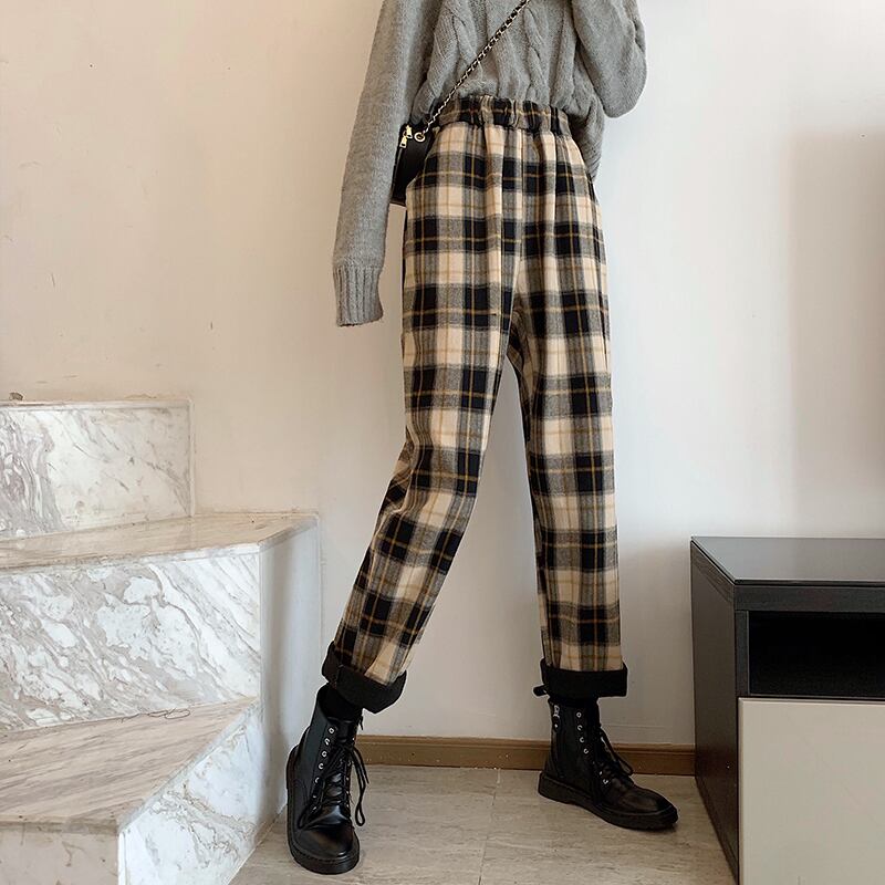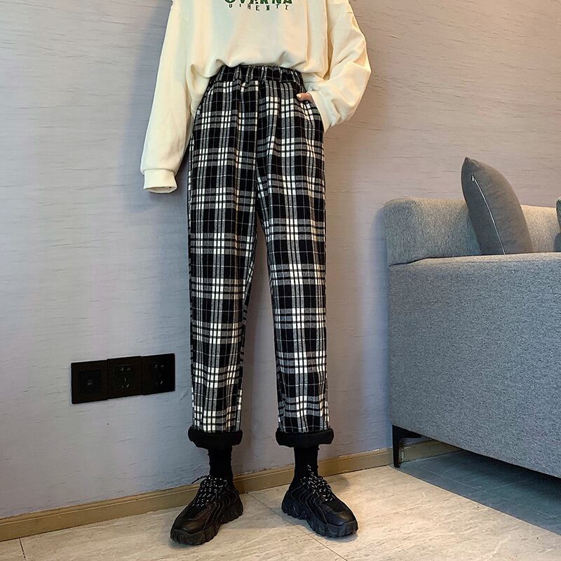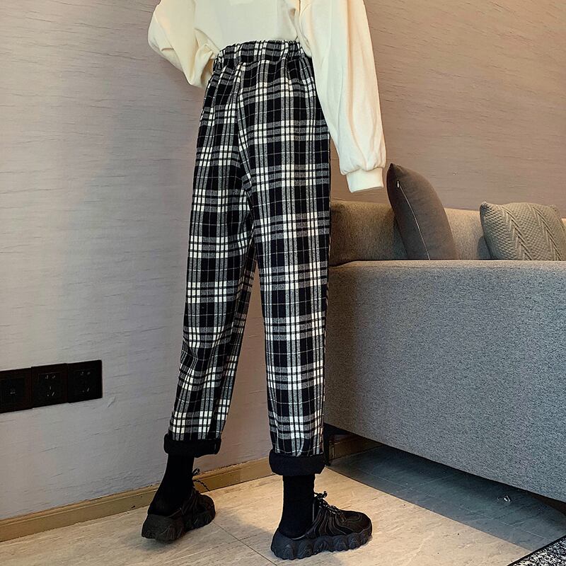 格子柄パンツ 秋物ウィンター厚みルーズハイウェストウェストカジュアル オータム 冬物 ウエスト コーデ marchs6732005196678