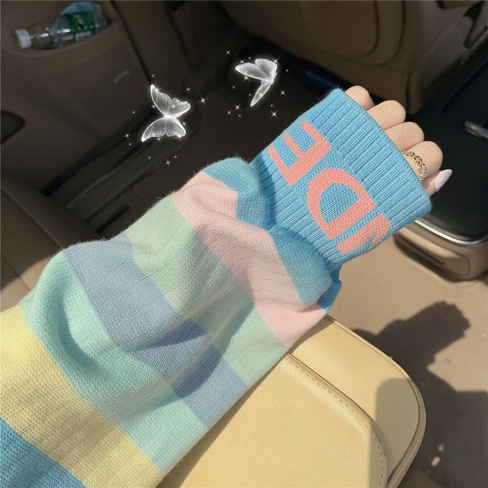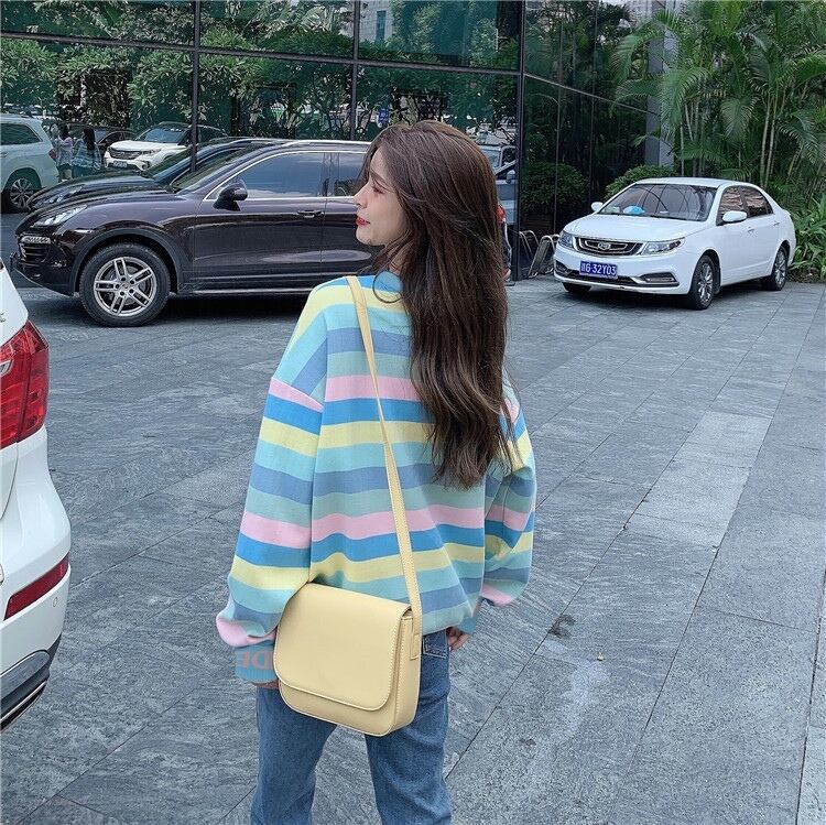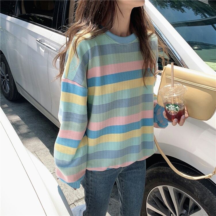 ストライプラウンドネックスプリング秋物ルーズ韓国ファッションNEW コットン 春物 オータム Oネック コーデ marchs6726164372311