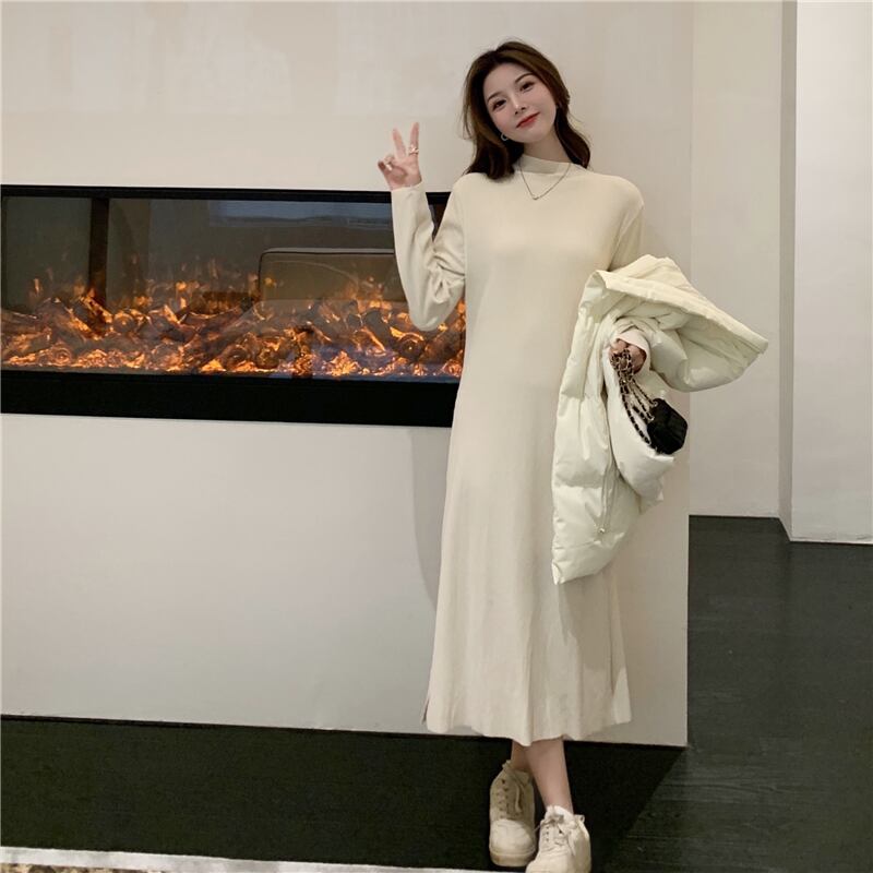 色:ピンクのコットンベストシングルピース,ベージュのコットンベスト一枚,アプリコット長袖ベーススカートワンピース,黒の長袖ベースドレスワンピース