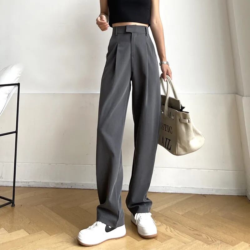 グレーパンツ 秋物ハイウェストウェスト薄手ルーズカジュアル オータム ウエスト コーデ Marchs51489287669