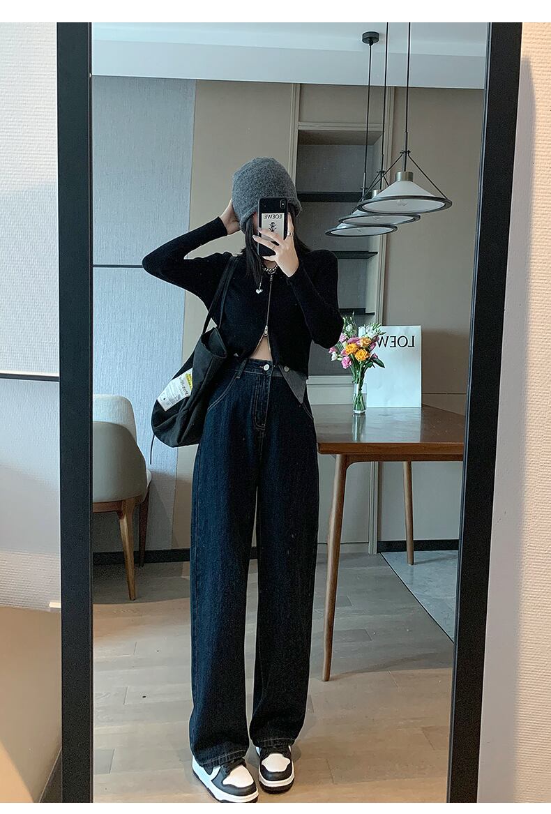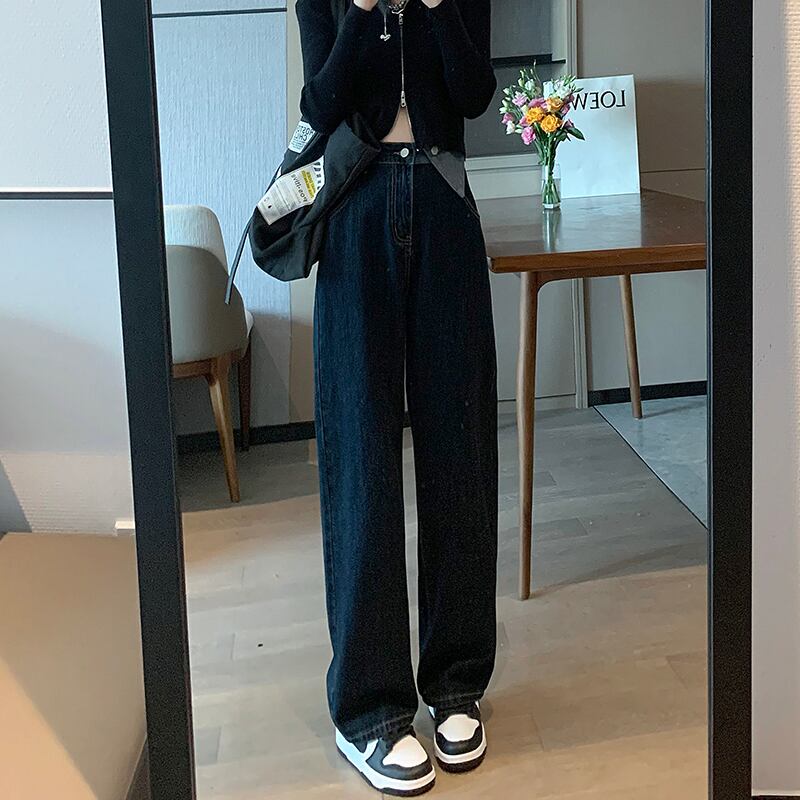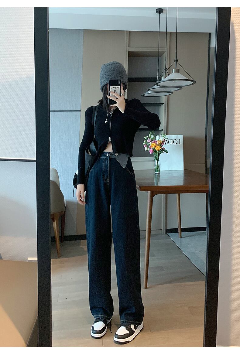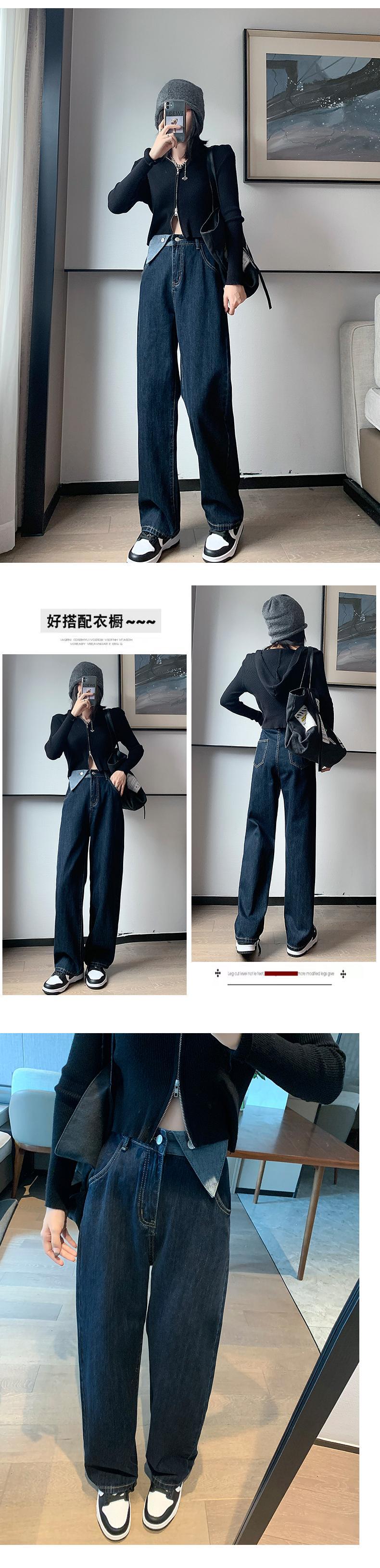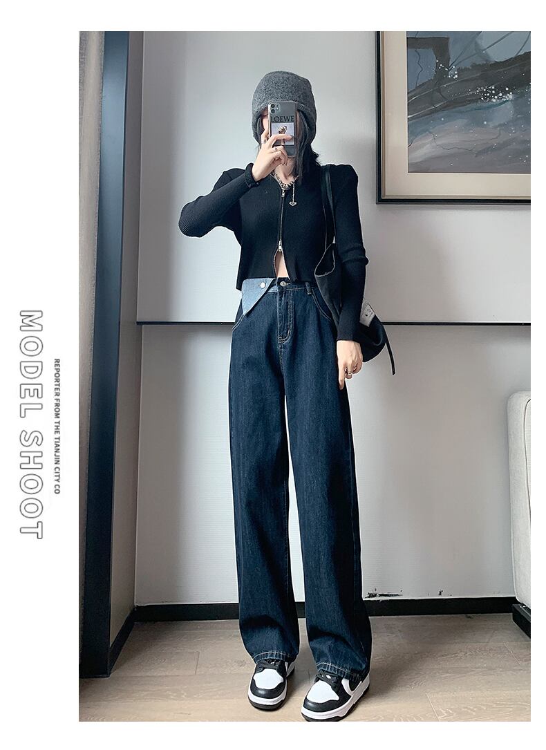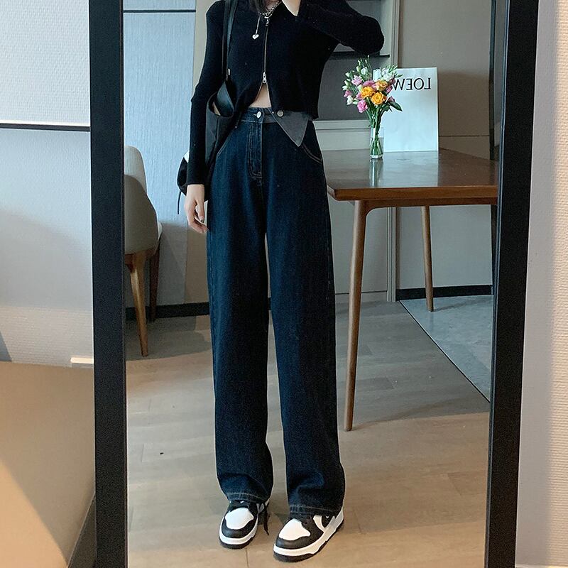 ダークブルーハイウェストジーンズ パンツ ウエスト コーデ Marchs17354783614