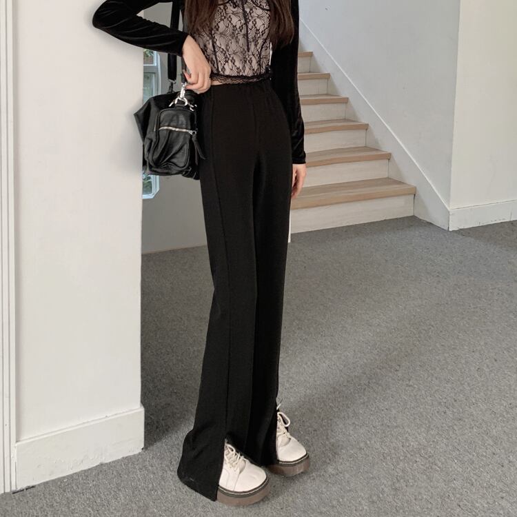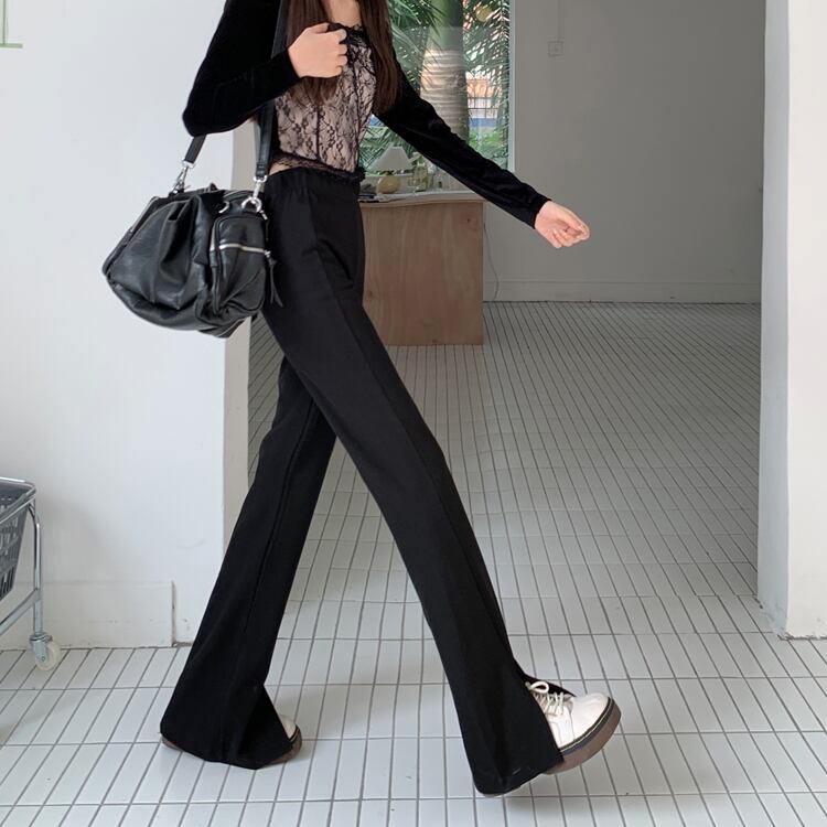 スタンダードハイウェストパンツ スプリング秋物韓国ファッション レッド レトロ 春物 オータム スタイル ウエスト コーデ Marchs30995328904