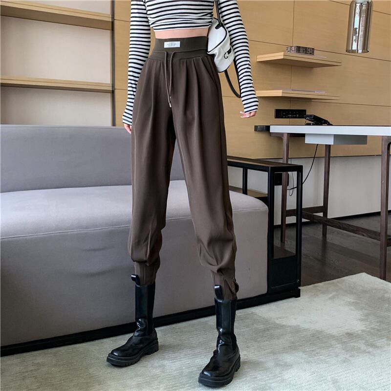 カラーパンツスプリング秋物ルーズハイウェストカジュアルパンツ レース 春物 オータム レースアップ ウエスト コーデ Marchs53736368572