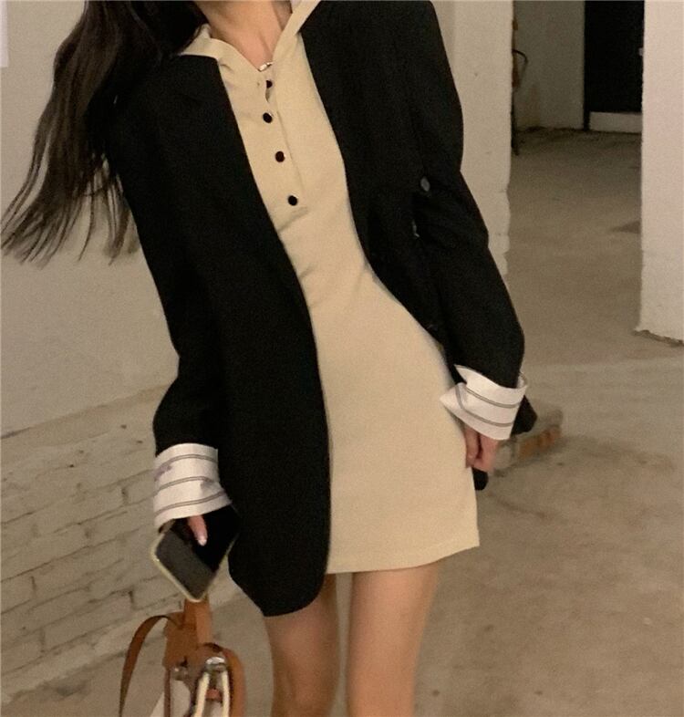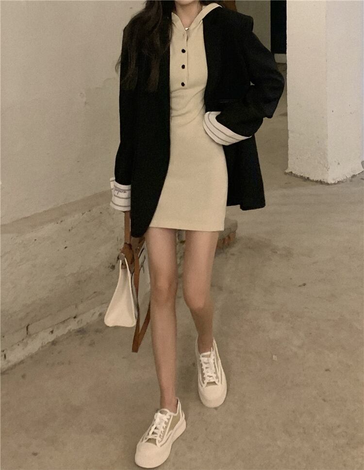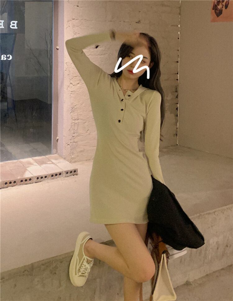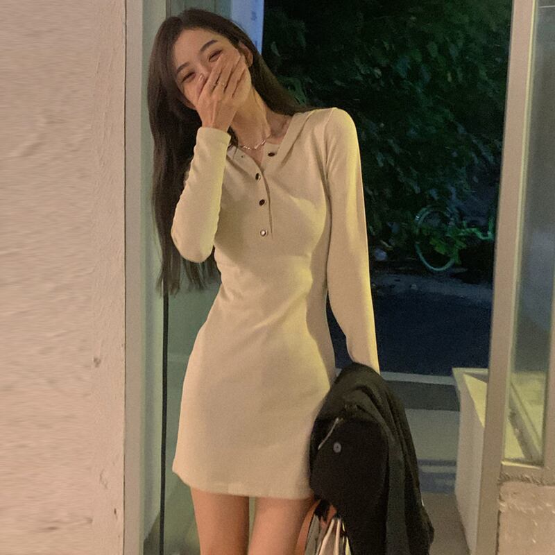 スプリング秋物韓国ファッションスタイルフードニットワンピーススリムショートスカート ロング 春物 オータム 長袖 コーデ marchs6785477799771