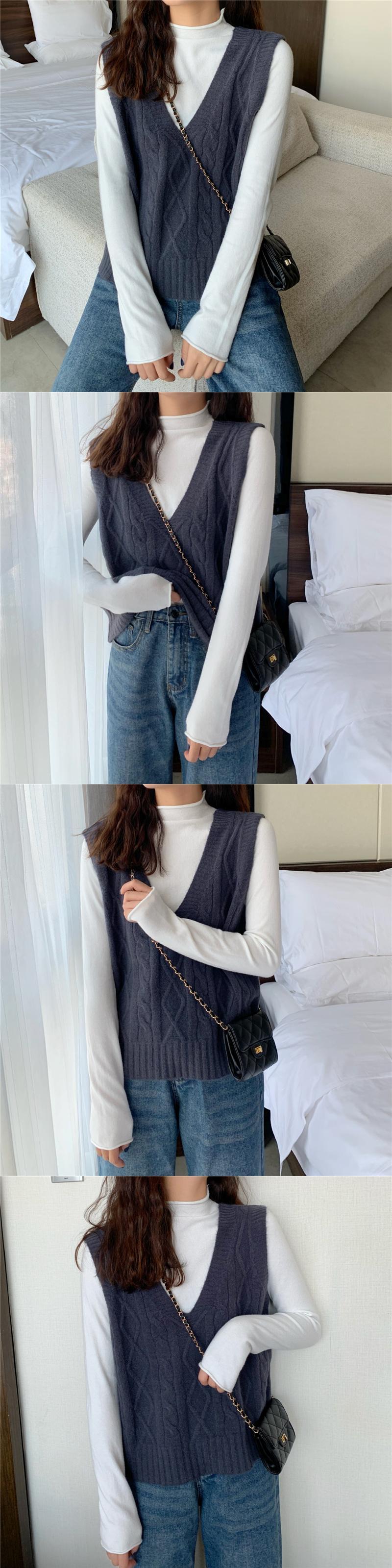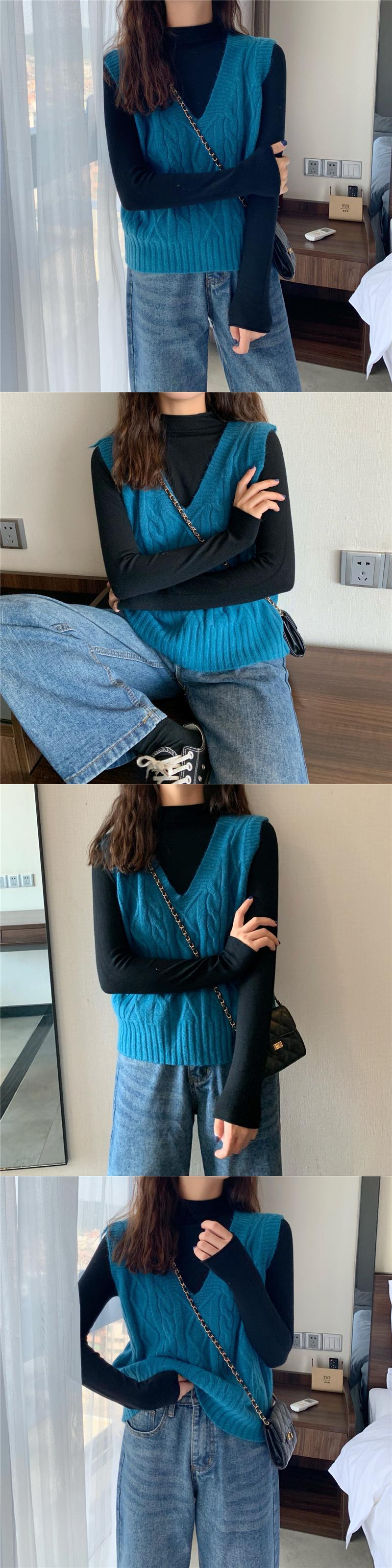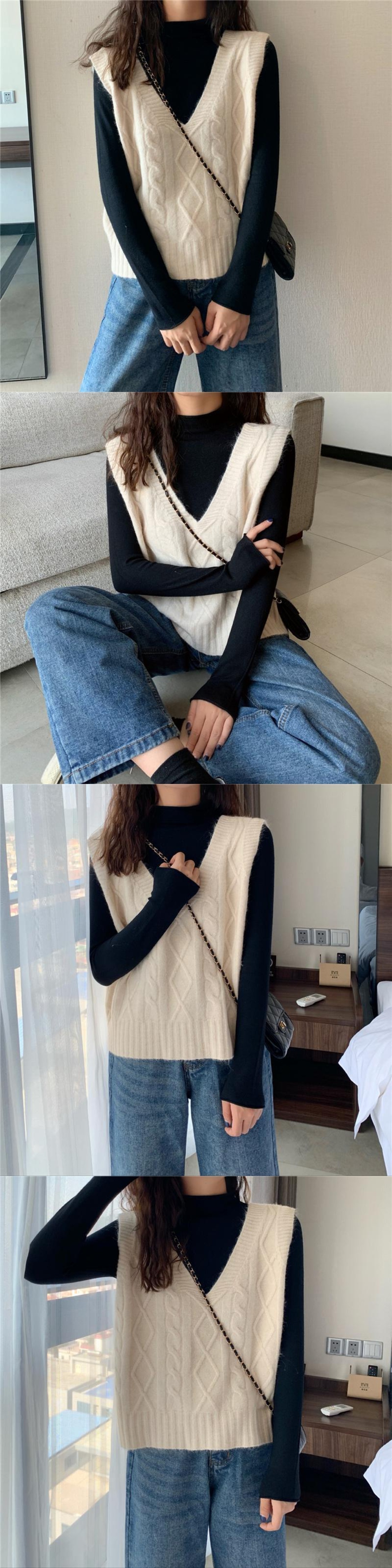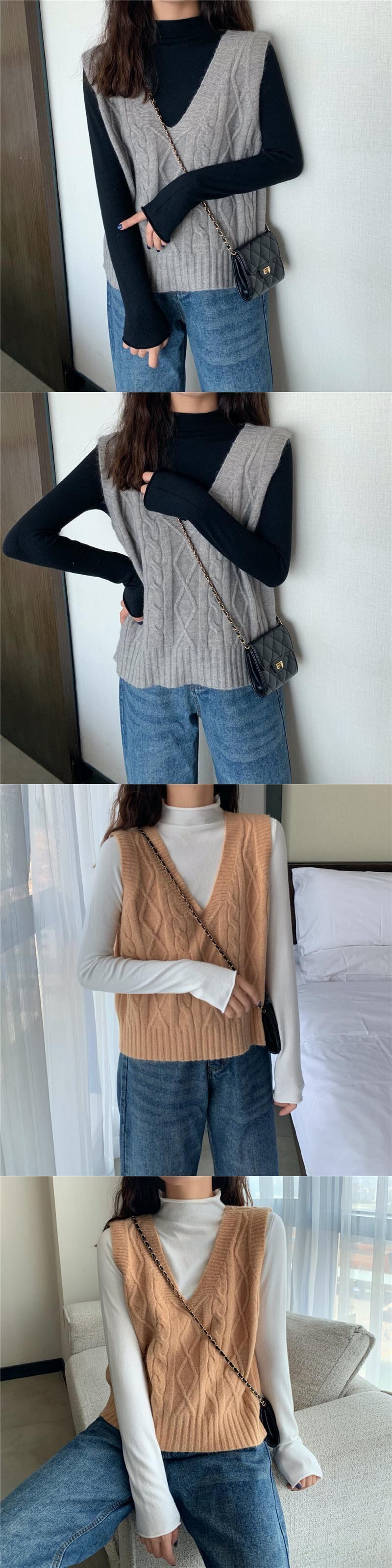 スプリング秋物ノースリーブセーター ルーズニットショートトップス 春物 オータム ウエスト コーデ Marchs90293537386