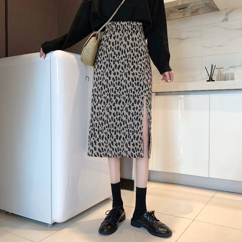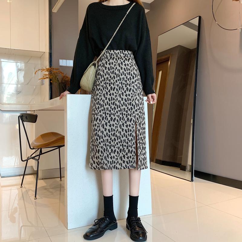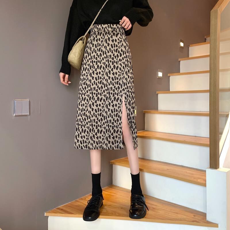 レオパードプリント柄スカート レディース秋物ウィンターハイウェストAライン オータム 冬物 ウエスト ミドル丈 コーデ Marchs58281081773