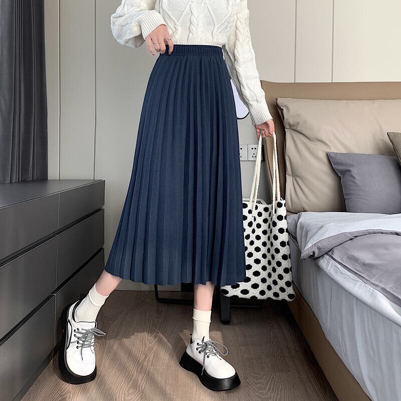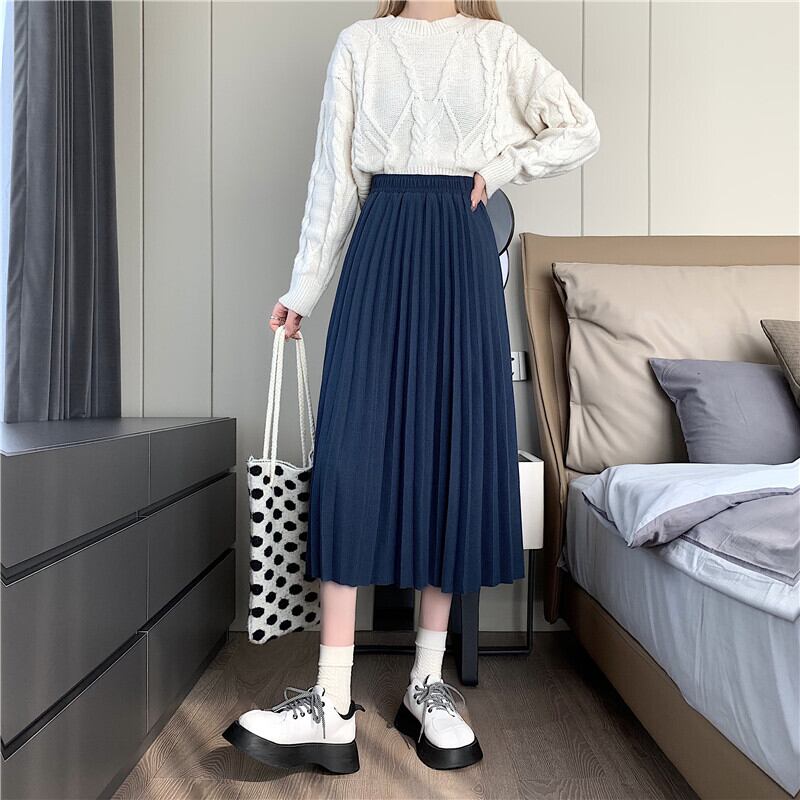 ウェストスカート レディース秋物ウィンターAライン薄手プリーツカラー オータム 冬物 ウエスト ミドル丈 コーデ Marchs62243921673