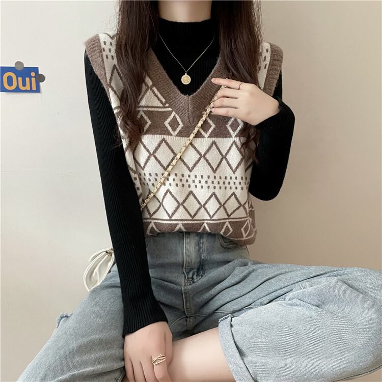 秋物スタイルVネックニットルーズショートセーター トップス オータム ウエスト コーデ Marchs50130726803