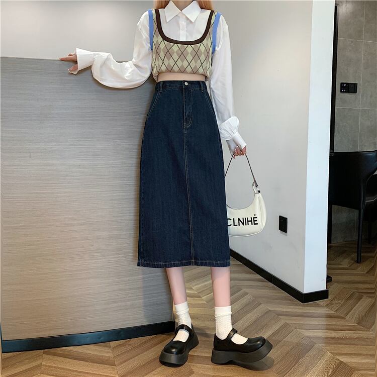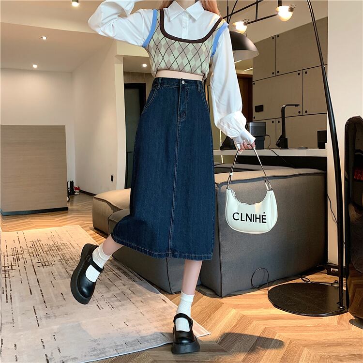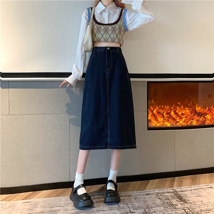 スカート レディース秋物Aライン ブルー オータム スタイル ミドル丈 コーデ Marchs49121141608