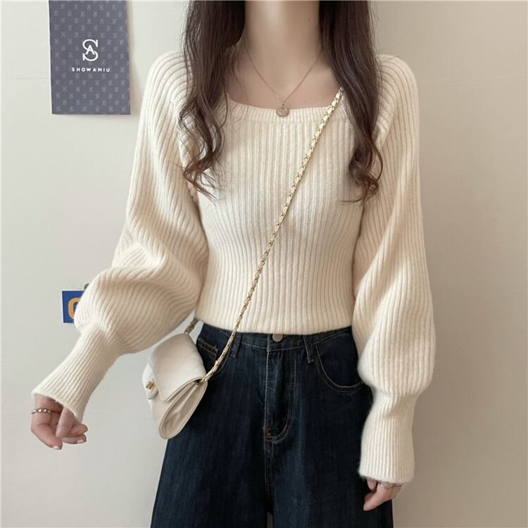 秋物ウィンターブラウス スタンダードショートニットゆったりシャツ レディースプルオーバー セーター レトロ オータム 冬物 コーデ Marchs17831957153