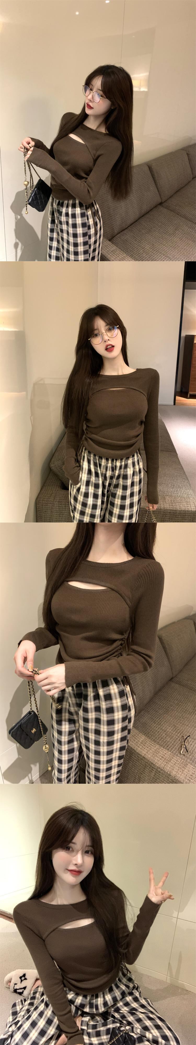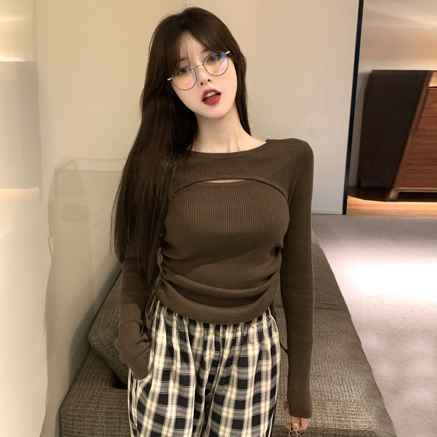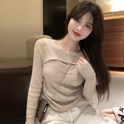 ギャザーゆったりシャツ レディース秋物ウィンターニットカラーセーター トップス オータム 冬物 NEW コーデ Marchs18686517820