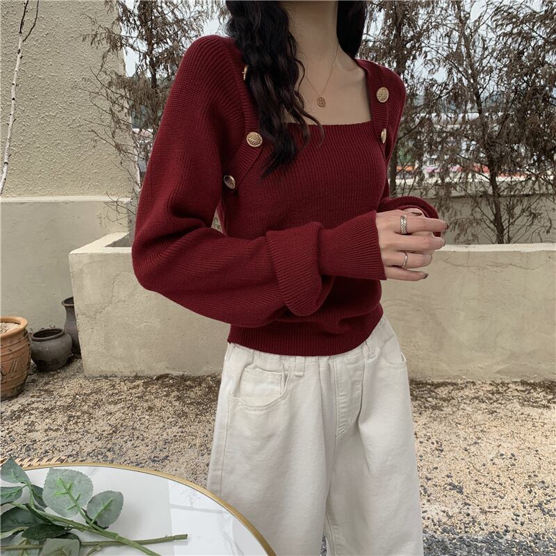 ニットゆったりシャツ 秋物ウィンタースリーブボタン ロング オータム 冬物 スクウェア 長袖 コーデ Marchs29679669485