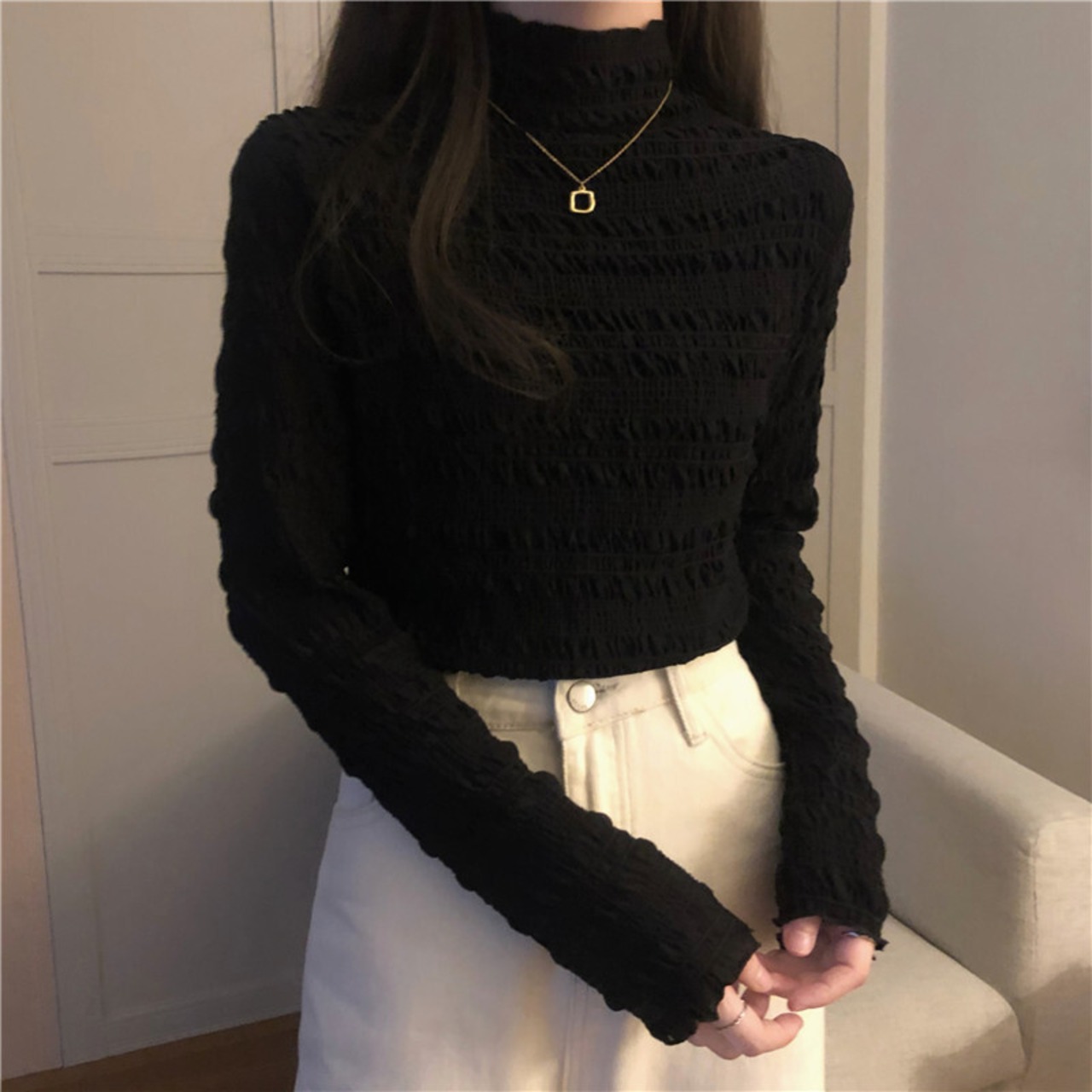 カラーレースゆったりシャツ スプリング秋物ウィンター厚みスタイルブラウス 春物 オータム 冬物 コーデ marchs6792984876547