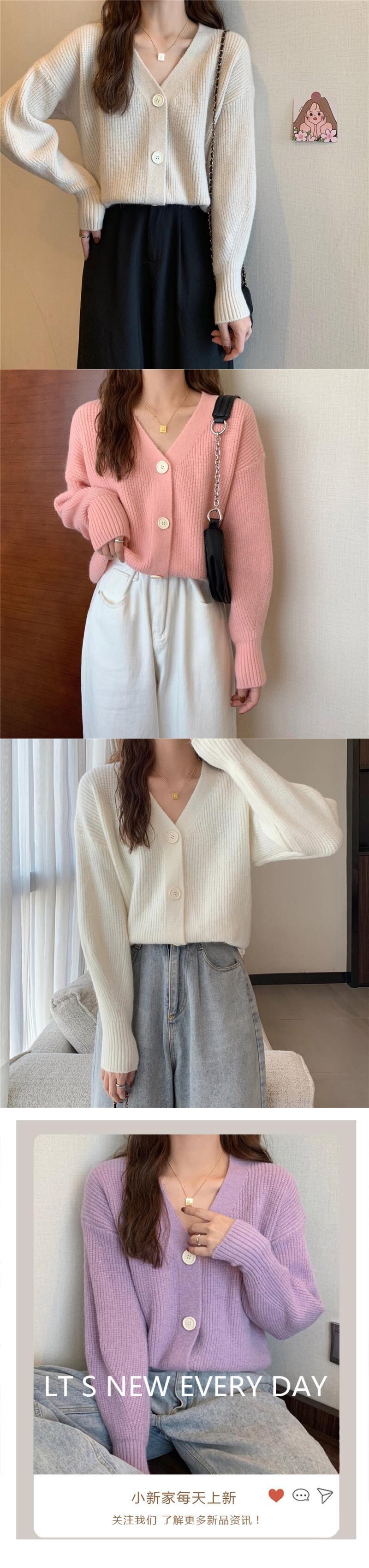 ニットカーディガンセーター ジャケット 秋物ウィンターホワイトVネック長袖スリーブトップス ロング オータム 冬物 コーデ Marchs66577850509