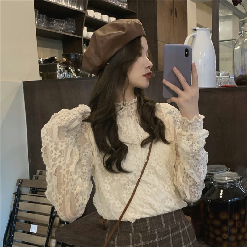 スプリング秋物韓国ファッションカラーブラウス レースゆったりシャツ レディース ロング 春物 オータム スタイル 長袖 コーデ marchs6756376588132