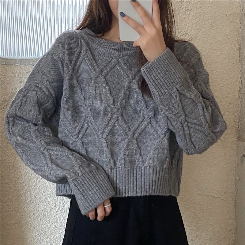 ショートセーター スタンダードスタイルルーズラウンドネック秋物ウィンターシャツ レトロ オータム 冬物 Oネック コーデ Marchs38630260209