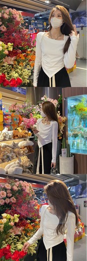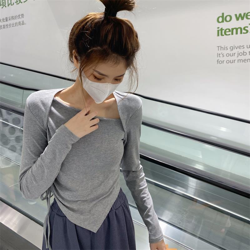 アシンメトリートップス スプリング秋物ブラックゆったりシャツ ロング 春物 オータム 長袖 コーデ marchs6748070153145