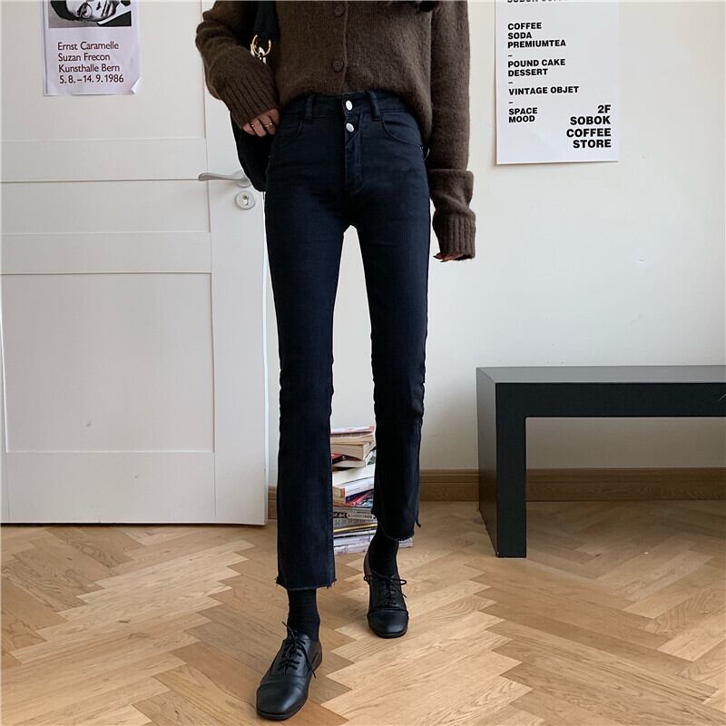バックルハイウェストウェストスリムジーンズ スプリング秋物パンツ 春物 オータム ウエスト コーデ marchs6720779301063